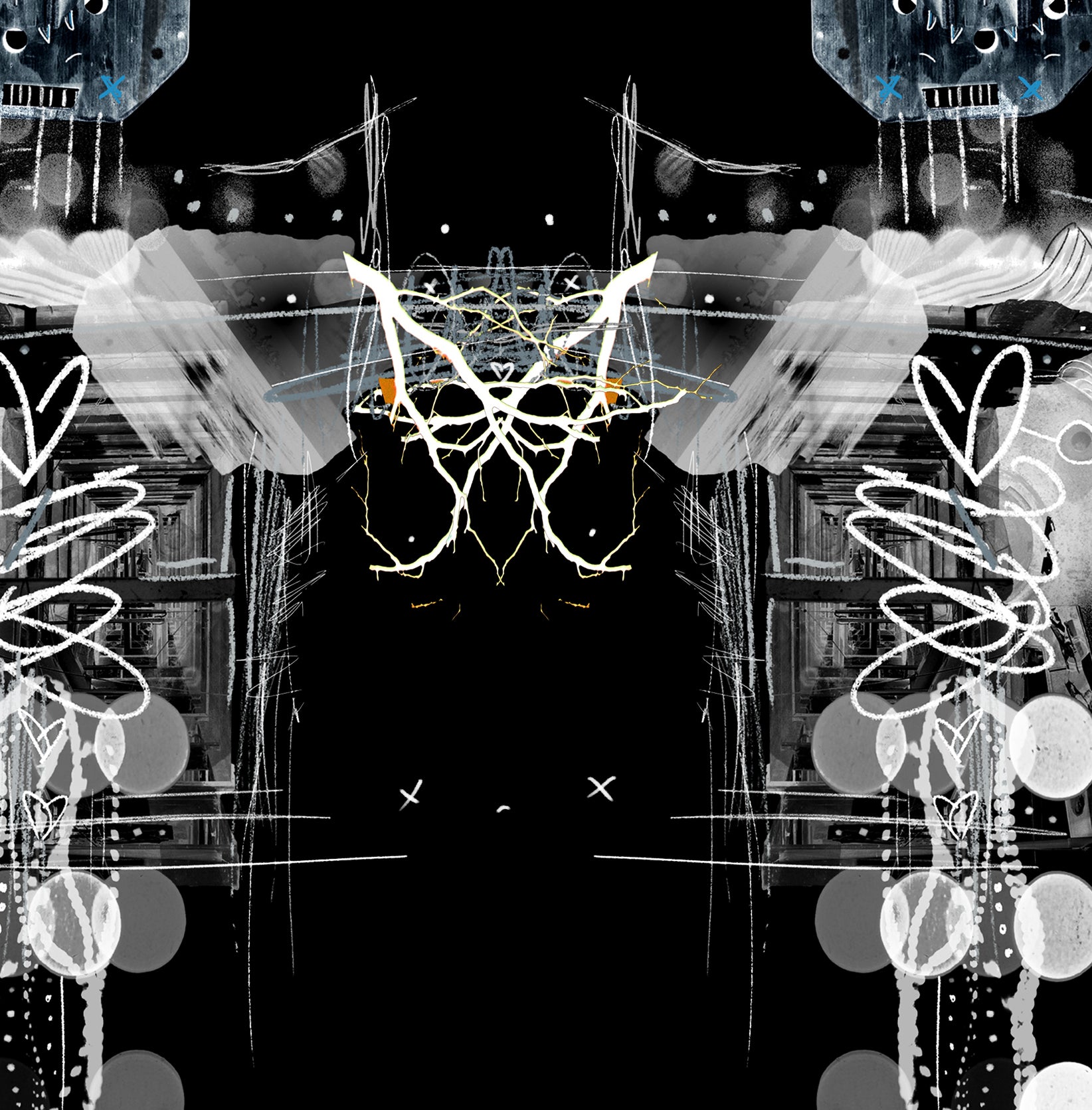 In the middle is the autobiographical aspect I think. This body, this potato robot sack that walks around town isn't devil and angel, but character and caricature maybe... chaos and order... but they're identical twins, since it's all about how it's applied in perspective... sorta?