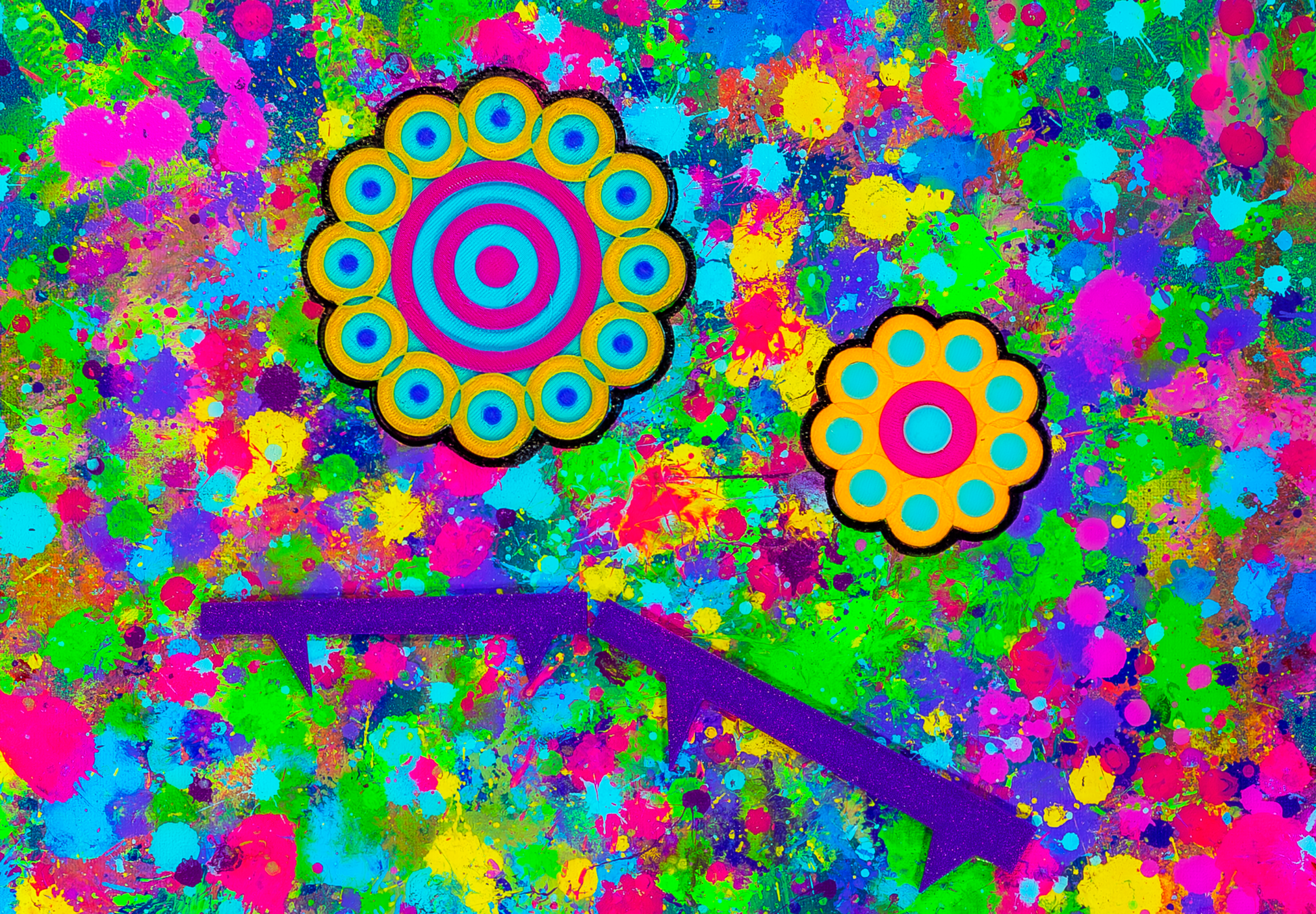 Since I can't draw, I CaDed those designs, then 3dprinted and glued that shit to the painting. It's a flower, and it just did something that made it go "boing." I've been trying to figure out what it was, but this Boinger is a fortress of secrecy.