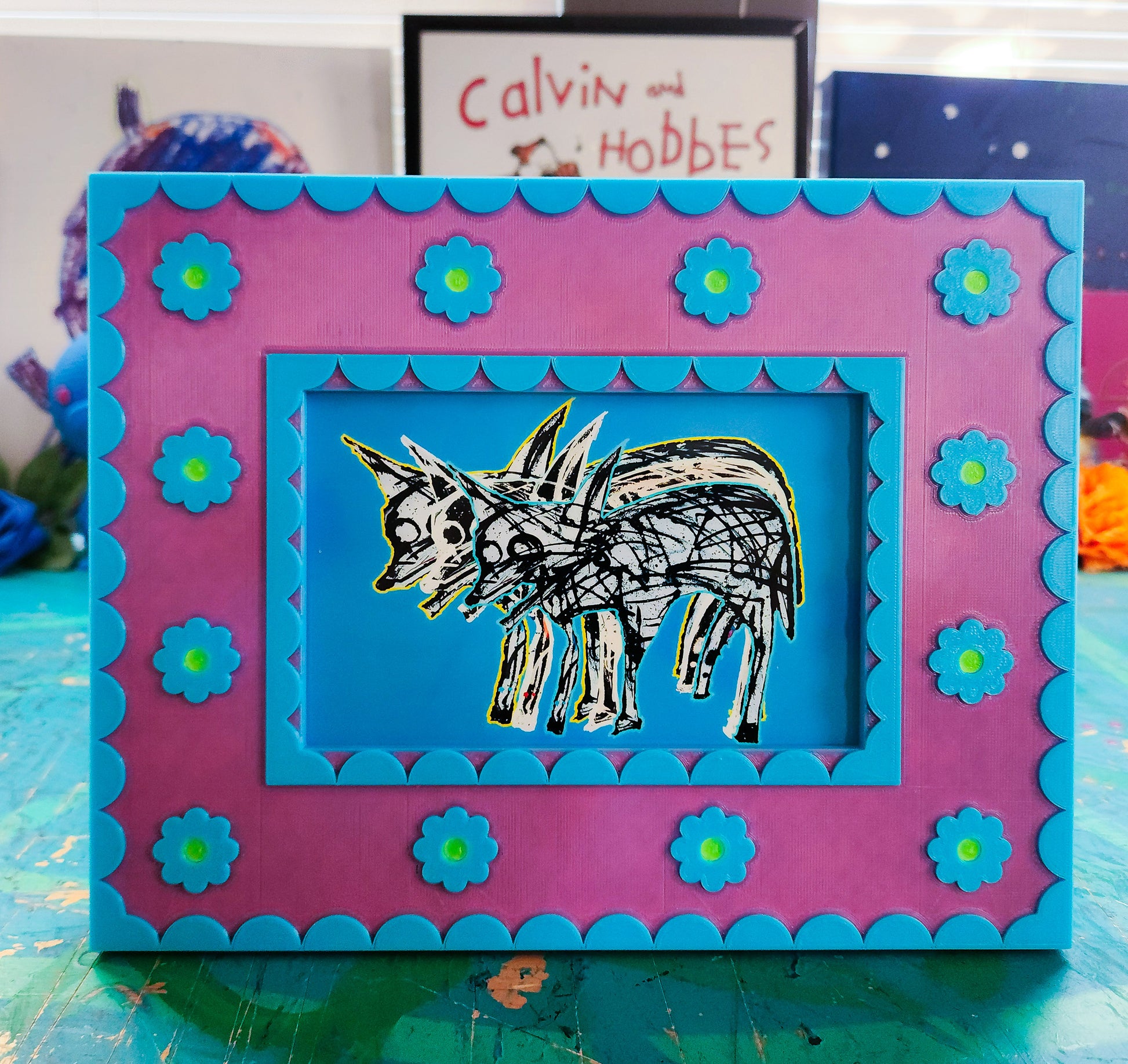 It's the little cub version of the xL Echo Frame but this one has magnets built in for whatever surface magnets stick to, like a fridge. It's a painting for your fridge! A FRAINTING! ha.