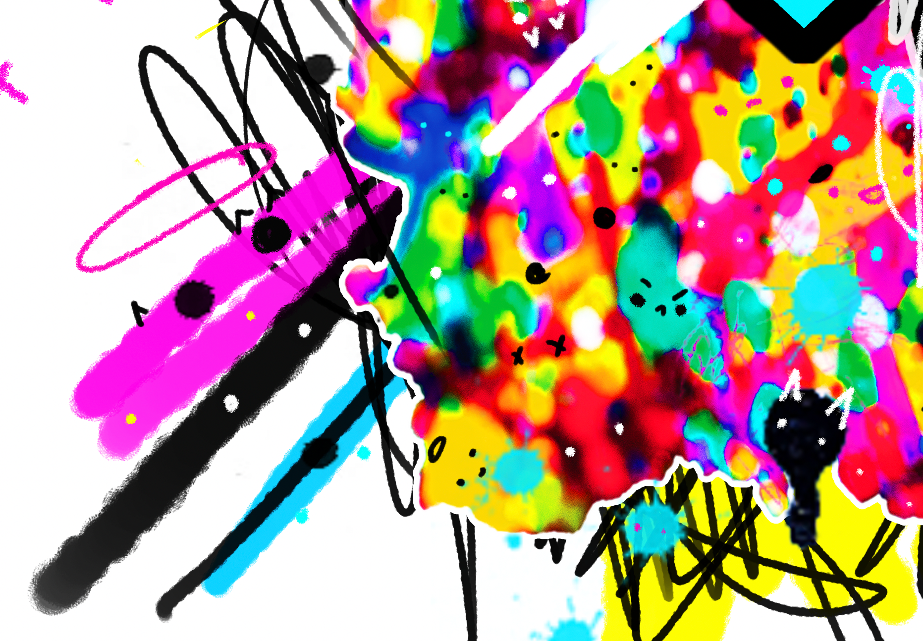 I can't draw for shit, so I just remix and collage myself. I combine spray paint on analog canvas, photography, DigiDoodling, CaD design, 3dPrinting, painting that 3dP shit and starting the process over. This is the Digital Bath technique.